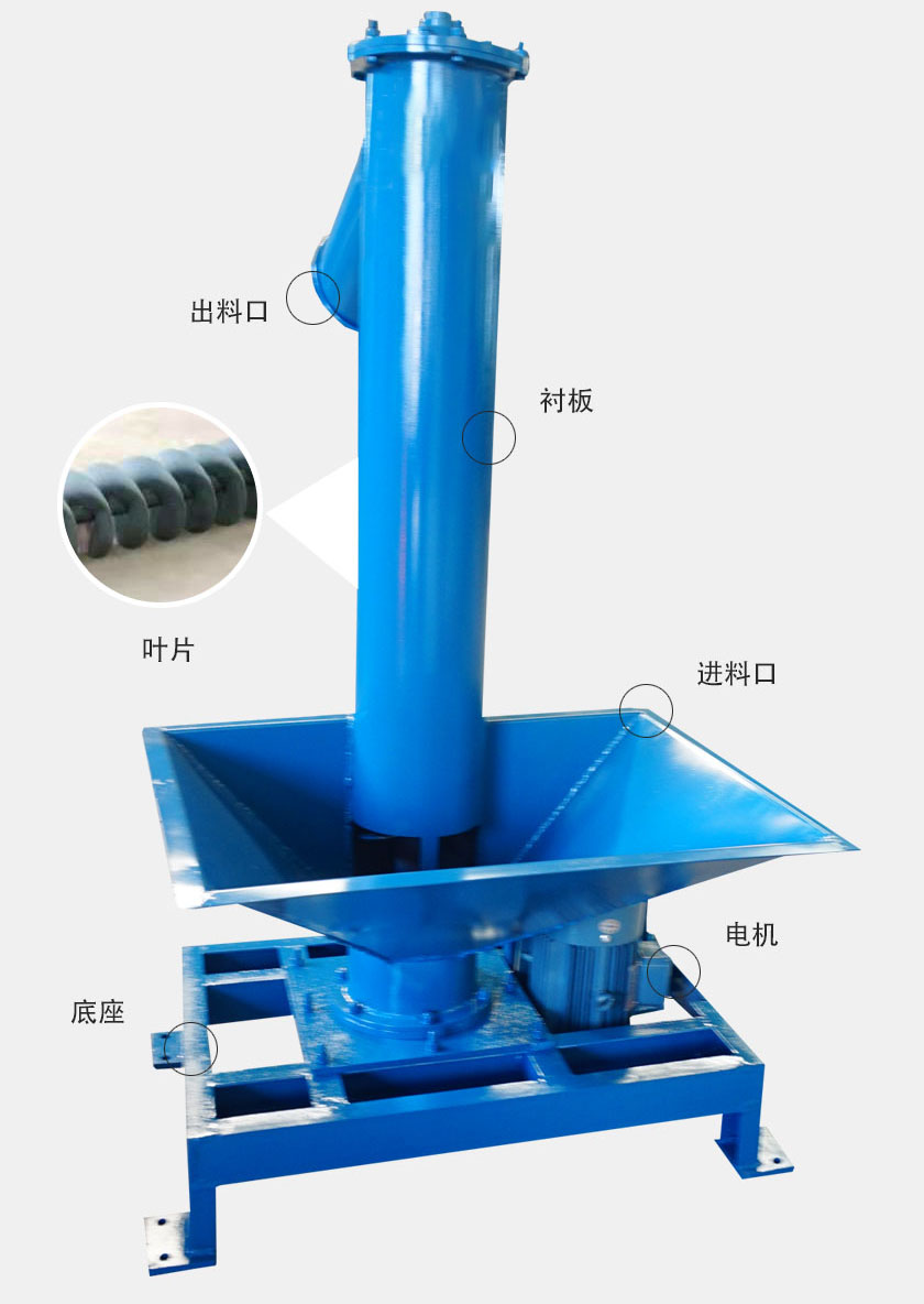 與普通螺旋輸送機(jī)相比,一般用于輸送類(lèi)似的面粉、粉狀物料和小顆粒物料,因?yàn)槲锪舷蛏线\(yùn)動(dòng)時(shí),自身的重力和設(shè)備的離心力會(huì)發(fā)生碰撞。輸送效率;螺旋葉片會(huì)與物料發(fā)生碰撞,造成物料破碎。